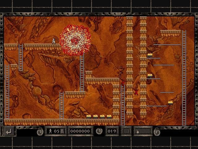 Lode Runner On-Line: The Mad Monks’ Revenge picks up where the original classic left off, putting you back in the boots of Jake Peril as he infiltrates the Evil Empire’s lairs. At its core, the game retains the signature ladder-and-platform puzzle structure fans know and love: you must gather scattered treasures while avoiding—or outsmarting—the Mad Monks bent on stopping you. Each screen unfolds like a miniature labyrinth, demanding careful timing and strategic digging to create escape routes or trap your pursuers.