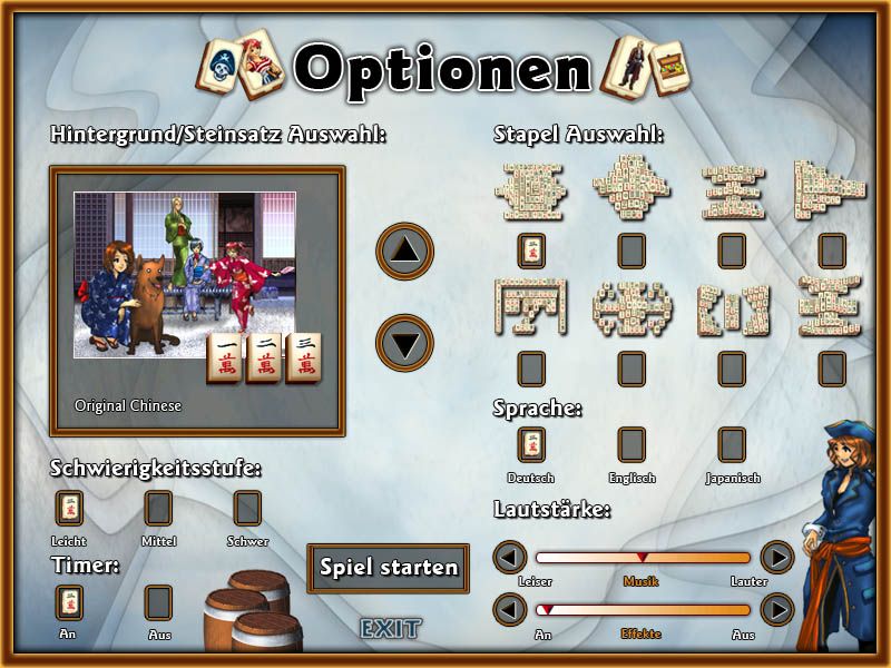 Where MangaJongg distinguishes itself is in its customization. Before each round, you can choose from a lineup of thematic backgrounds—pirates, sports, music, or traditional Chinese art—that not only alters the ambiance but also subtly influences your perception of the tile arrangement. Switching between several distinct stone sets lets you optimize readability or simply refresh the visuals if you find yourself playing for hours on end.