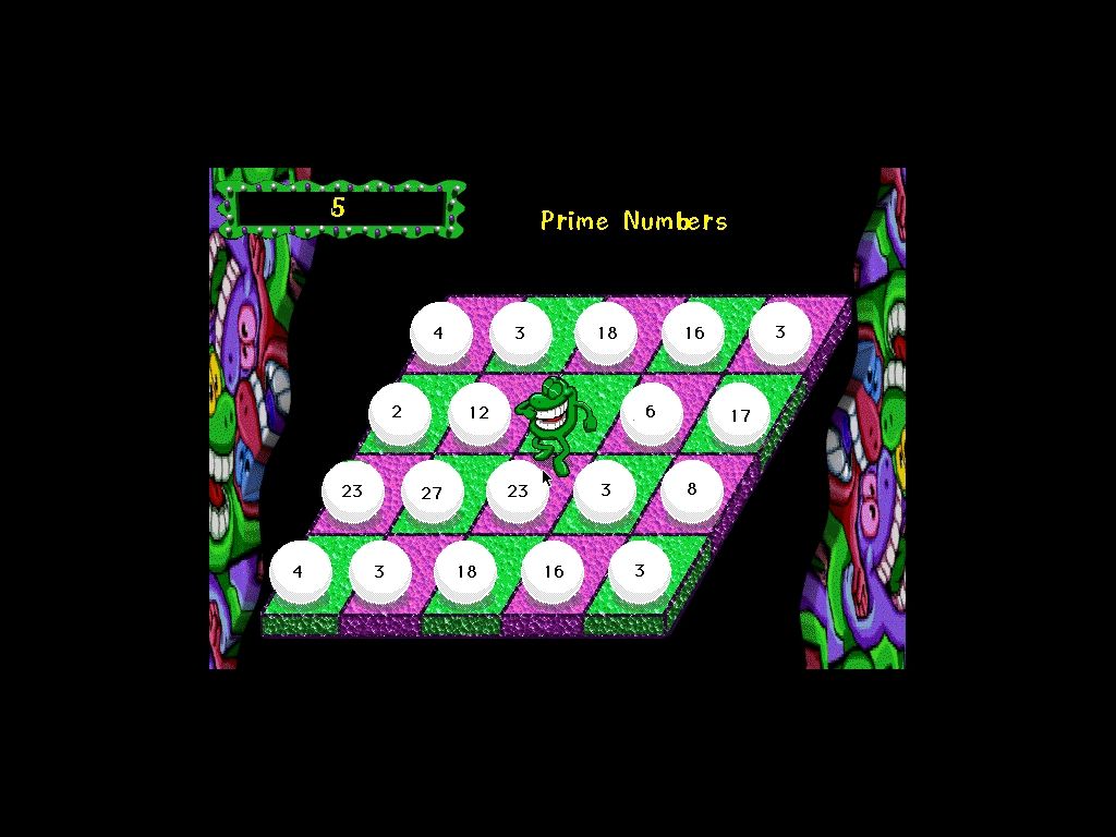 Math Munchers Deluxe drops you straight into the action as a hungry, frog-like creature tasked with devouring the correct answers to a variety of math questions. You’ll navigate a grid-based board, chowing down on sums, factors, primes, and fractions while dodging the mischievous Troggles that patrol each level. The simplicity of the controls—move up, down, left, or right—belies the strategic depth you’ll need when deciding which munchable answer to pursue first.
