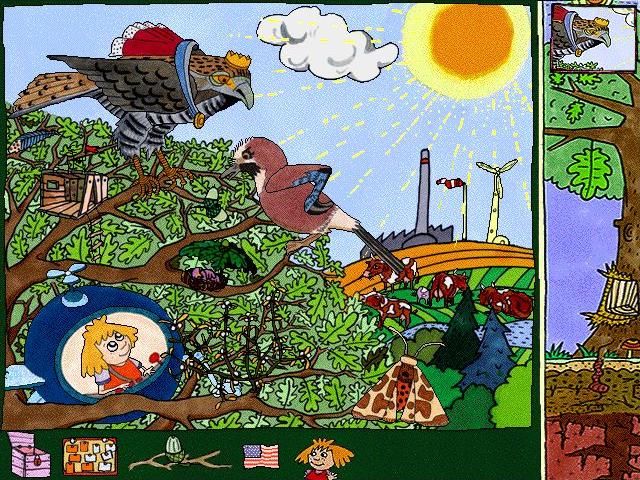 Millie Meter and Her Adventures in the Oak Tree invites players into a point-and-click exploration, where every branch, root, and leaf holds a secret waiting to be uncovered. Using only the mouse, you guide Millie’s little copter cursor across the oak tree’s various layers—underground tunnels, inner bark passages, and the leafy canopy. Clickable spots light up the cursor with a tiny helicopter icon, signaling that an interactive explanation or short animation is just a click away.