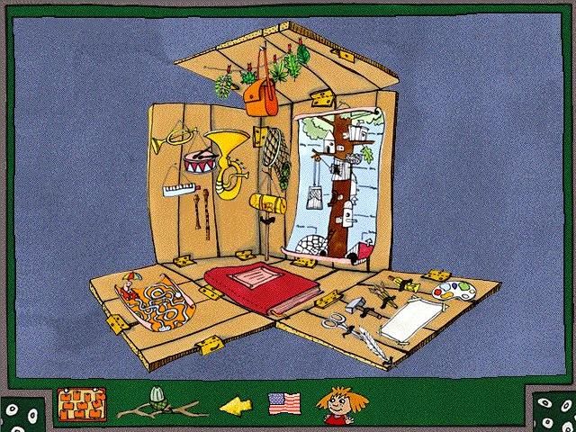 The interface elements are thoughtfully integrated into the scene. The right-hand tree panel provides a constant visual cue of your current location, while the bottom tray’s icons are stylized as wooden signposts or rubber stamps, fitting the overall arboreal theme. Everything from the mini-game controls to the language-selection menu feels at home in Millie’s forest classroom.