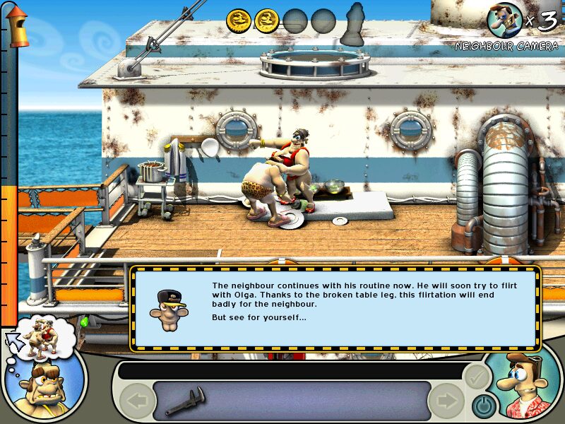 Beyond the primary mechanics, neighbor-specific quirks keep things entertaining. The neighbor’s love interest, Olga, pops up in select levels, offering both distraction and opportunity. Meanwhile, her rebellious son adds a new comedic foil—Woody can’t stand him, and vice versa. These interactions not only diversify the prank toolbox but also add layers of strategy. Should you bait the mother into chasing Woody while the neighbor’s son unwittingly helps you? Such opportunities inject fresh life into familiar formulae.