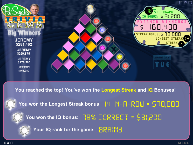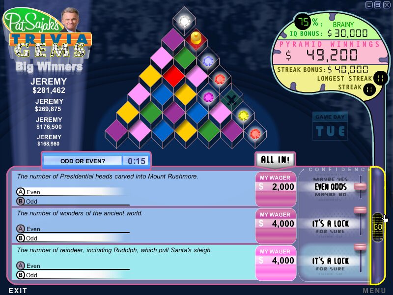 In sum, Trivia Gems strikes a winning balance between production polish and gameplay depth. Whether you’re a casual trivia buff or a determined quiz champion, this title offers hours of fun, strategic wagering, and the thrill of climbing to the top of the pyramid under the guidance of Pat Sajak himself.