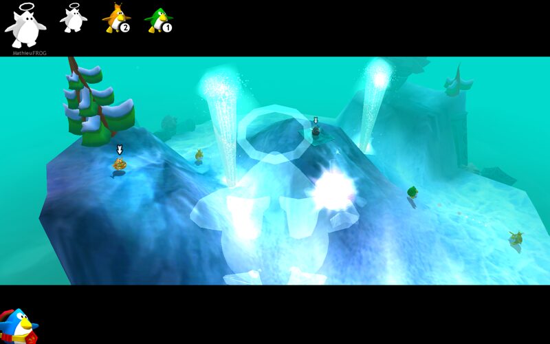 While the snowball is your default weapon, Penguins Arena spices things up by scattering five additional weapons and power-ups across the battleground. One particularly memorable gadget is the Dynamite Fish: throw it at the ice and wait as it ticks down to a cartoonish explosion that clears out clusters of opponents. Another fan favorite is the Gust of Clownfish, which sprays slippery fish in rapid succession, temporarily blinding and sliding foes across the ice.