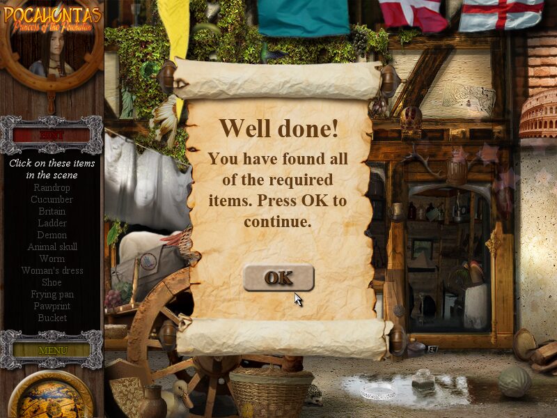 In the end, if you’re in the market for a cozy hidden‐object adventure with a dash of mini-game variety, Pocahontas: Princess of the Powhatan can provide a leisurely few hours of gameplay. Just be prepared to suspend disbelief and take the story at face value, enjoying it as a colorful fantasy rather than a rigorous historical simulation.