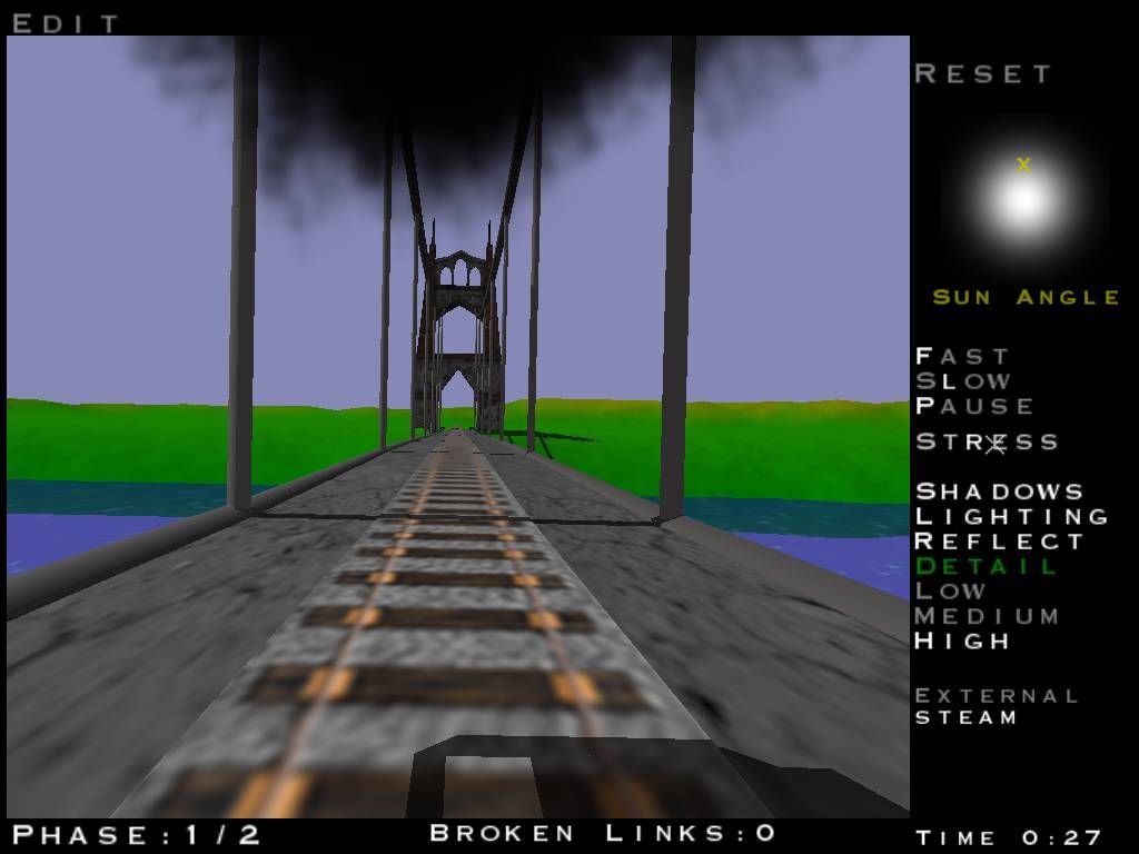 Bridge components are rendered with careful detail: wood planks show grain, metal girders gleam, and cables sag realistically under their own weight. When a structure bends or snaps, the motion is fluid and dramatic, making every collapse a small spectacle. Sound effects and particle details—creaking timbers, splintering wood, and clattering iron—further immerse you in the trial-and-error process.
