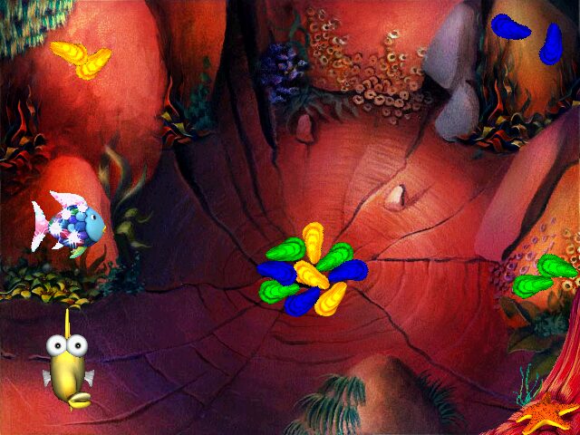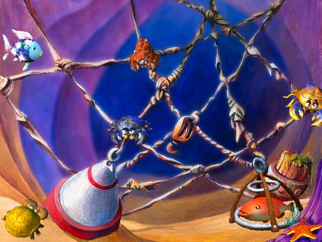 Furthermore, the UI icons—especially the Yes-No fish—are large, colorful, and instantly recognizable. Players never need to guess what an action does, which reinforces confidence and independence. Overall, the graphical presentation is a standout feature that elevates Rainbow Fish and the Whale above many other educational titles in this age range.