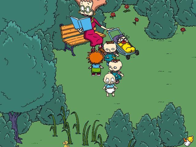 Visually, Rugrats: Mystery Adventures nails the look and feel of the original animated series. Characters are rendered in vibrant 2D sprites that mirror their television counterparts, complete with exaggerated expressions and playful animations. Backgrounds are colorful, whimsical depictions of classic Rugrats locales — from the Pickles family living room to Mr. Slabs’s garden shed — that evoke nostalgia for longtime fans and charm newcomers.