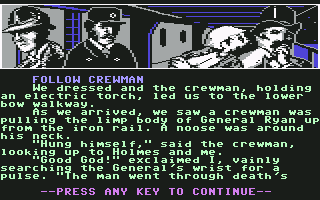 The narrative thrust of “Another Bow” is a brand-new mystery set aboard the luxurious steamship S.S. Destiny. When a crewman awakens Holmes and Watson to what appears to be a suicide, the pair quickly realize something darker lies beneath the surface. From the first typed command, you’re drawn into a layered plot that balances red herrings, hidden motives, and period intrigue.
