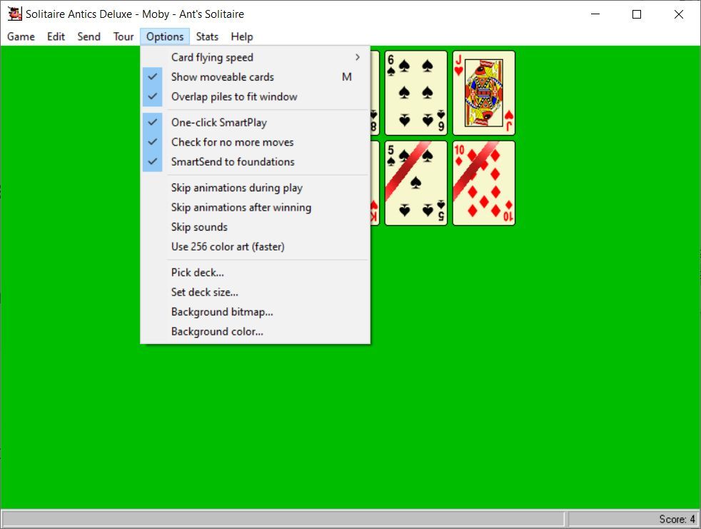 Visually, Solitaire Antics: Deluxe strikes a balance between clean card design and charming, cartoonish elements. The standard cards are crisp and highly legible, with a tasteful color palette that minimizes eye strain during extended play sessions. Background themes can be customized, offering everything from a simple felt table to whimsical ant colonies set against bright, cheerful backdrops. These themes aren’t merely decorative—they can boost focus, helping you distinguish piles quickly when speed matters.