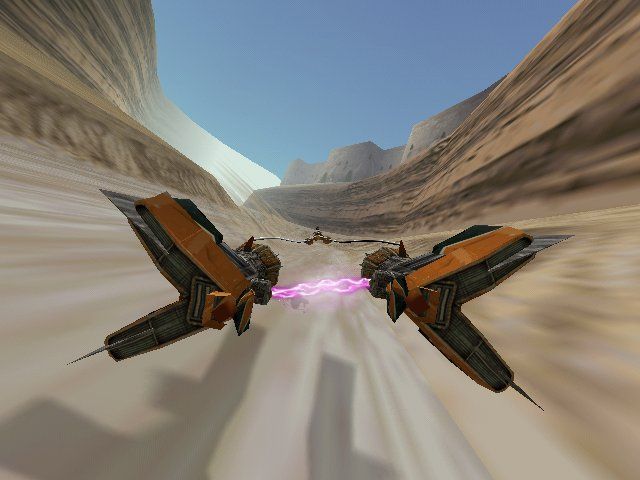 For its era, Episode I – Racer’s visuals remain impressive. The game uses pre-rendered backgrounds and low-polygon models to create sweeping vistas of Tatooine’s dunes, Coruscant’s cityscapes, and the jungles of Malastare. The pod models themselves are faithfully detailed, featuring vibrant paint jobs and intricate engine designs that glow when you trigger afterburners.