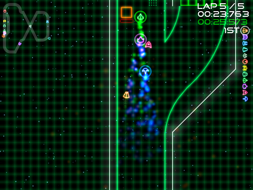 Each of the 12 tracks introduces unique visual themes—from neon-lit cityscapes and swirling asteroid fields to crystalline techno-jungles—yet all share the same clean vector design language. Subtle background animations and parallax effects give depth to the arenas, so you feel like you’re racing through a living, breathing circuit instead of a flat plane.