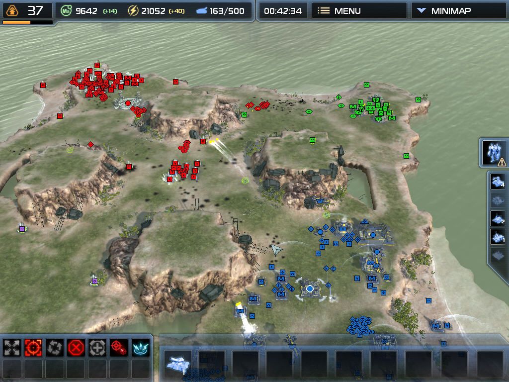 Terrain rendering benefits from dynamic water effects, rolling hills, and destructible environments that respond to heavy artillery and nukes alike. Zooming in reveals the pockmarks of laser strikes and the glowing vents of a reactor under siege, while zooming out keeps performance smooth even as hundreds of units converge in giant death spirals. The user interface also scales gracefully, with minimal clutter when viewing the entire map and detailed HUD elements when you need precise control.