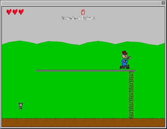 Animation quality varies across the mini-games. The possum’s chomping motion and the monster’s lunge are satisfyingly fluid for the style, but the hunter in The Hunted occasionally slips into staccato frames that can hamper your spatial judgments. Mannequin Wars emphasizes static poses and exaggerated limb damage, making the tactical loss of an arm or leg visually and mechanically impactful. Edgar’s explosive predicament is communicated entirely through blinking sprites and a shaking fuse, which builds tension in an unexpectedly suspenseful way.