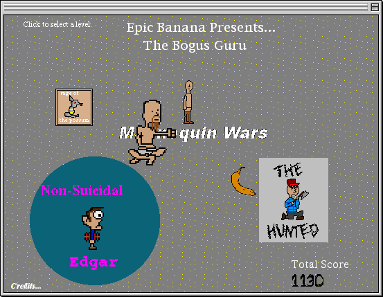 The Bogus Guru presents a curious mash-up of four distinct mini-games, each with its own mechanics and challenge curve. From the moment you navigate the level‐select screen, keeping your banana cursor away from the floating guru adds a light layer of tension to your decision of which game to tackle first. This playful bit of risk encourages quick decisions and keeps the opening screen from feeling static or uninteresting.