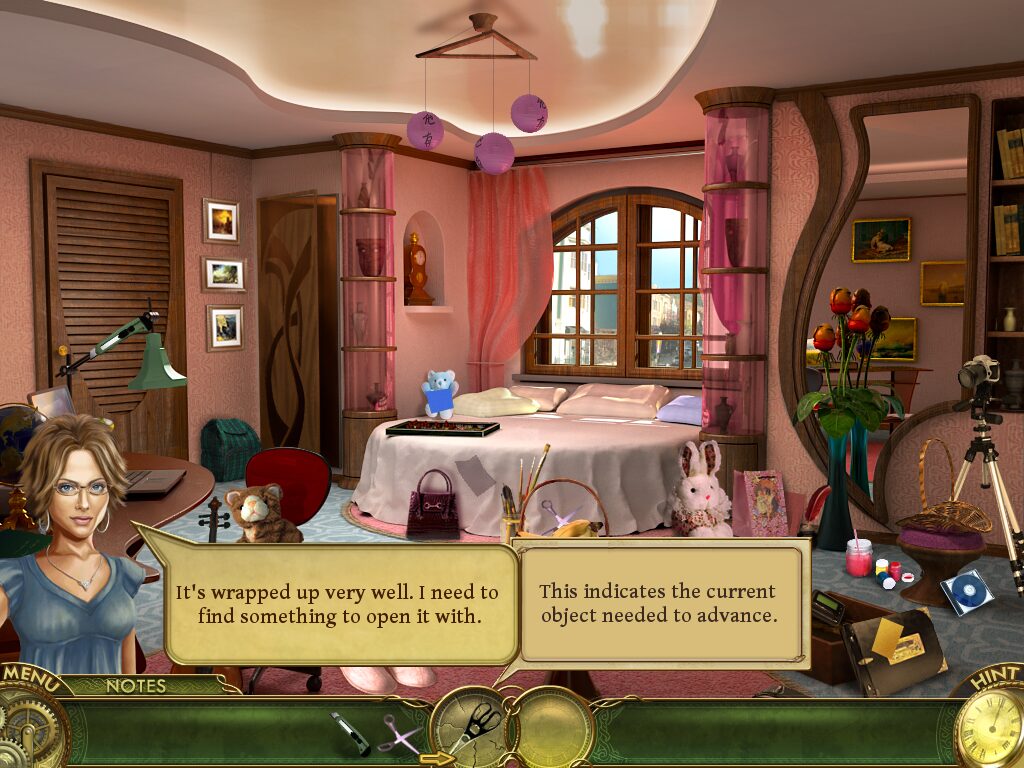 High-resolution hand-drawn art is a constant pleasure, with each scene packed with cleverly hidden items that feel natural to the environment—a stolen key rests beside a stack of letters, a mini puzzle piece peeks from under a teddy bear’s paw. Animations are subtle yet effective: gentle flickers of candlelight, drifting paper scraps, and the slight shimmer of the portal glass lend a cinematic quality to your investigation.