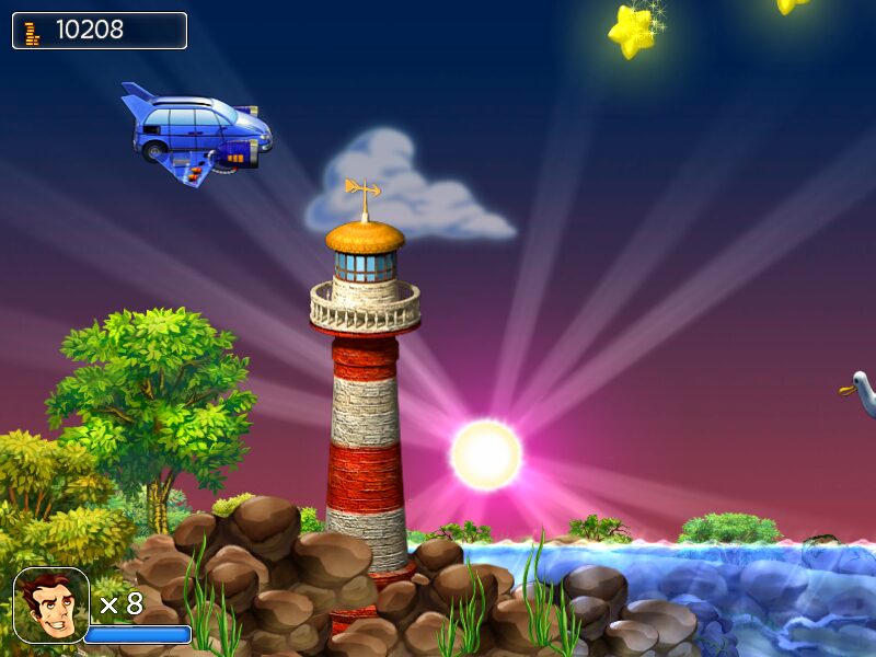 The Tuttles Madcap Misadventures delivers a quirky blend of side-scrolling flight segments and classic platforming action. In the flying mini-van sections, players guide the family’s airborne vehicle through ever-changing skies, deftly avoiding flocks of birds, patrolling helicopters, and even the unexpected obstacle of towering lighthouses. These sequences require quick reflexes and precise maneuvering, as the van’s seemingly crash-happy physics can send you spiraling toward danger if you hesitate for too long.