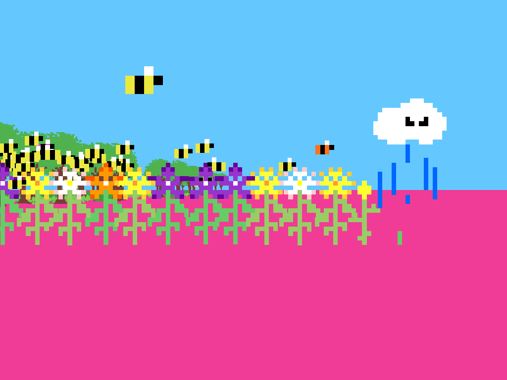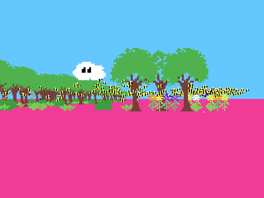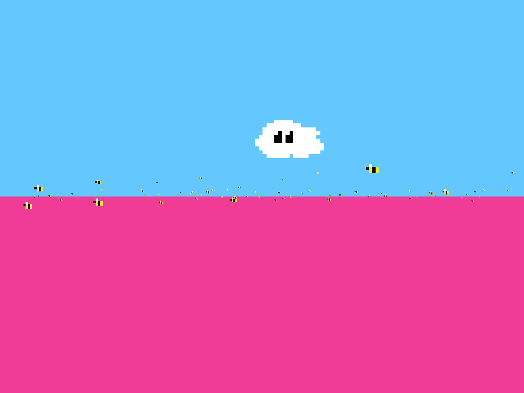 This Is How Bees Work uses a faux 3D environment populated by charming 2D sprites, striking a balance between simplicity and visual appeal. The ground is rendered in soft, textured tones that evoke fertile soil, while the cloud you control is depicted with gentle shading and subtle animations. Together, these elements create an inviting tableau that encourages exploration and play.