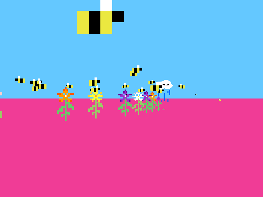 This Is How Bees Work presents a refreshingly simple yet surprisingly deep interactive loop that places the player in control of a cloud. Using only the mouse, you click to make it rain, which in turn attracts bees to the sprouts emerging from the ground. As the bees gather pollen, they carry seeds and drop them in new locations, causing flowers, bushes, and trees to grow. This straightforward control scheme makes the game immediately accessible to players of all ages and backgrounds.