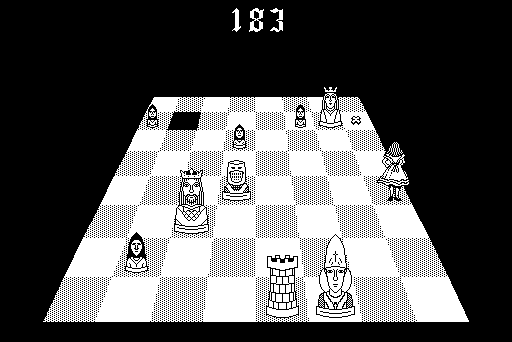 For an early Macintosh title developed in-house at Apple, Through the Looking Glass stands out with its crisp monochrome visuals and a clever use of depth perspective. The squares and pieces scale seamlessly as they recede toward the horizon, creating a pseudo-3D effect that was groundbreaking on the original 1984 hardware.