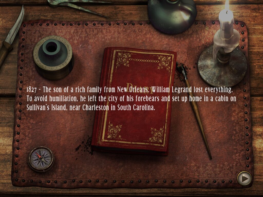 The narrative of Treasure Island: The Gold Bug is inspired by Edgar Allan Poe’s short story “The Gold-Bug,” and it faithfully captures the essence of cryptic treasure hunts and old-world mystery. You step into the shoes of William Legrand, a once-wealthy gentleman reduced to poverty, whose bizarre encounter with a golden beetle sets off a chain of obsessive exploration. His single-minded dedication drives the plot forward and provides motivation for uncovering each hidden clue.