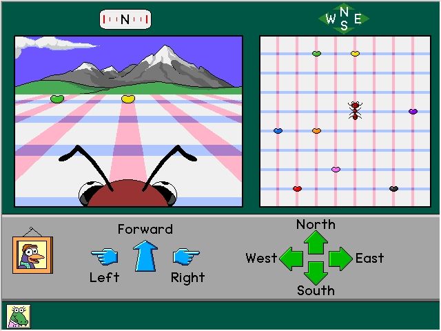 The game features five core activities: Earth Scout, Jellybean Hunt, Symbol Sandbox, Calendar Clock, and Time Twins. In Earth Scout, kids pilot a cartoon rocket to orbit the globe, snap pictures of landmarks, then print and color their souvenirs. Jellybean Hunt splits the screen into an ant’s-eye view and a simple grid map, letting children practice directional thinking as they guide the ant toward its target. Symbol Sandbox encourages pattern recognition by having players drag icons onto a grid to construct landscapes, while Calendar Clock and Time Twins introduce temporal concepts through real-time animation and matching digital and analog clocks.