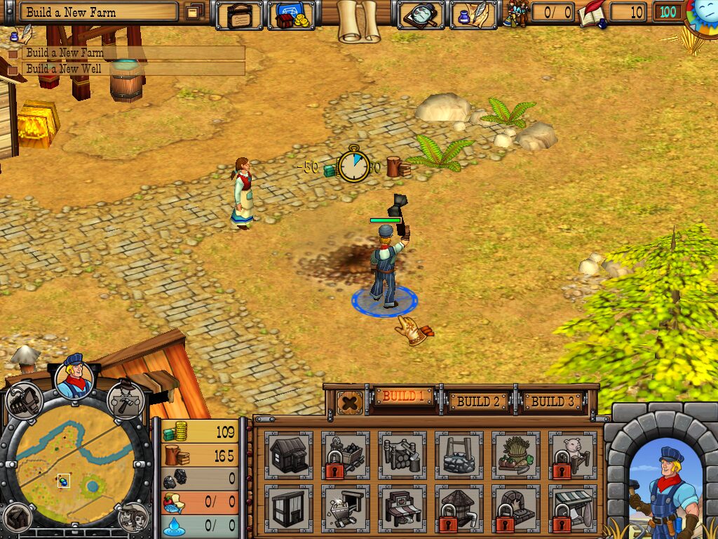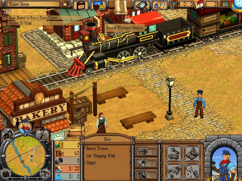 Westward IV: All Aboard builds on the familiar city-building mechanics of its predecessors, adding a strong focus on railway construction and logistics. From the very first mission, you’ll spend much of your time laying track between distant outposts, managing the flow of resources, and ensuring that every wagonload of coal, timber, and food arrives on schedule. The game’s interface allows you to click or drag directly on the terrain to move your hero and hired guns, then switch seamlessly to laying tracks or placing new structures from the construction menu.