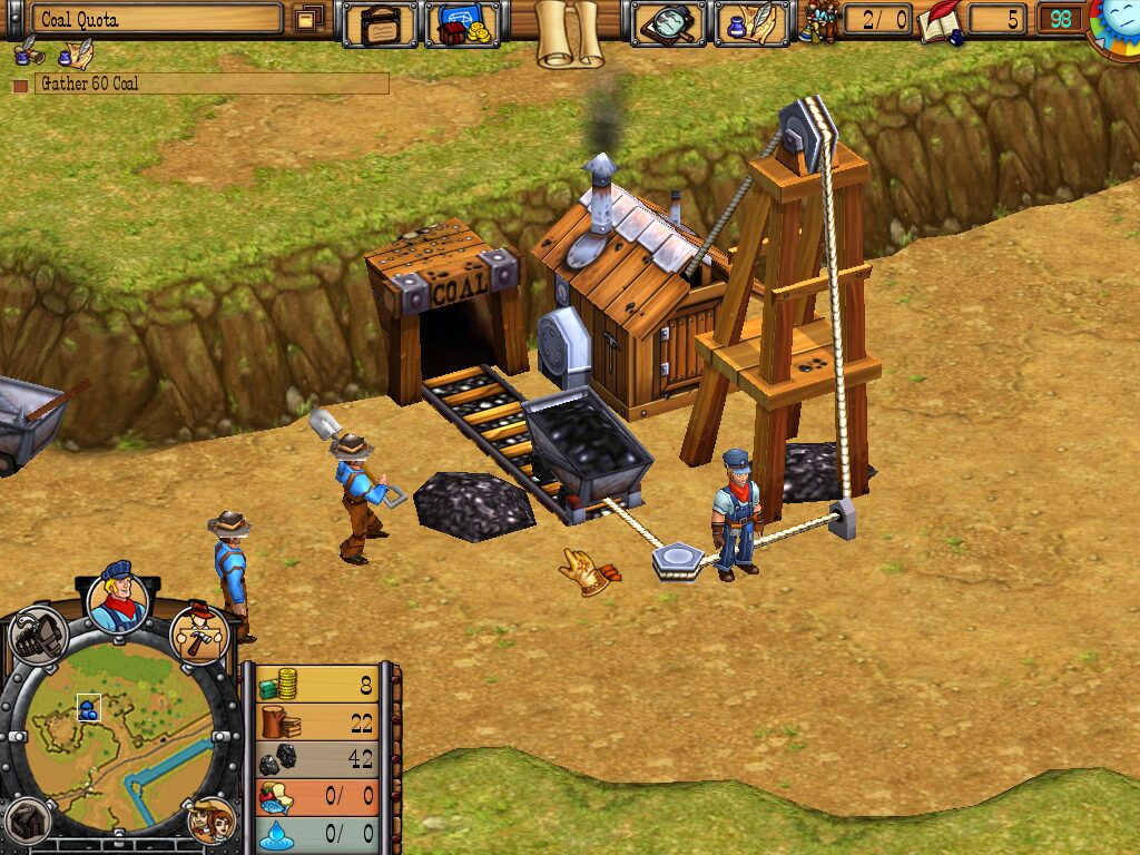 Resource management remains at the heart of All Aboard’s gameplay loop. Five core materials—gold, timber, coal, food, and water—must be harvested and transported efficiently to keep your town growing and your workers productive. Citizens appear automatically when housing is available, but neglect their basic needs and they’ll desert your settlement in frustration. This dynamic population system forces you to balance expansion with welfare, assigning workers to farms, mines, bakeries, or lumber camps as the situation demands.