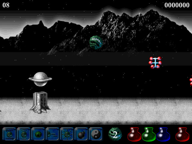 Wizball’s signature color-mixing puzzle elevates the standard shooter formula. Defeated enemies leak droplets of red, blue, or green paint, which Catellite must funnel into mixing pots. You’ll need to combine primary shades in precise ratios to match each level’s target hue before time runs out. Between frantic shoot-‘em-up action and methodical color assembly, the gameplay loop strikes a satisfying balance of reflexes and strategy.