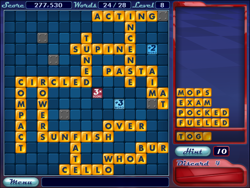 As you advance, the game introduces custom squares that double, triple, or even quadruple your word scores. Some spaces reward you with extra hints or discards, while others act as impassable barriers, forcing you to reroute your chain of letters. Each new level reshapes the board’s landscape, keeping the puzzle engaging and encouraging you to rethink tactics rather than rely on repeated patterns.