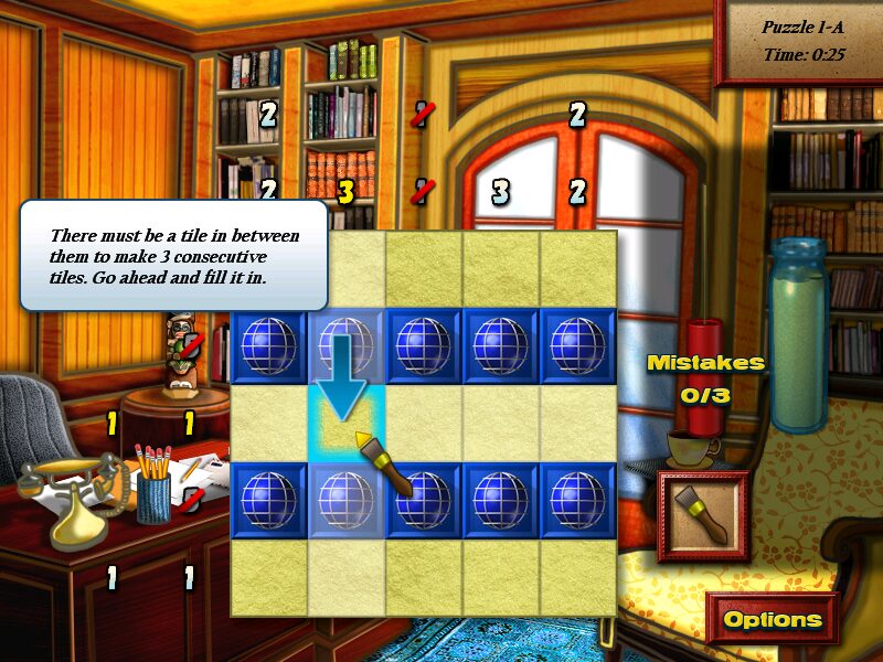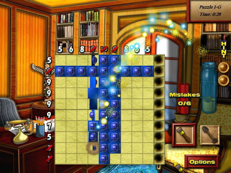 World Mosaics delivers a satisfying twist on the classic “picture crossword” format, borrowing core ideas from titles like Picross and Minesweeper while adding its own unique brush-and-shovel mechanics. Players navigate a grid with a brush cursor to paint squares and a shovel cursor to mark blanks. Numeric clues line each row and column, indicating runs of consecutive painted squares that form the completed image. As you uncover correct segments, the corresponding numbers cross off, giving instant feedback on your progress.