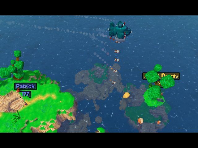 The fully destructible landscape is a technical highlight: terrain deformation happens in real time, carving out holes, cliffs and lava pits wherever your weapons strike. Each blast permanently alters the battlefield, forcing you to rethink strategy on the fly. Although draw distances and texture resolutions feel dated by today’s standards, the clean art style helps the game remain visually coherent and immediately readable—even amid the chaos of simultaneous homing missiles, fire bananas and concrete donkeys.