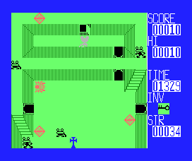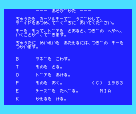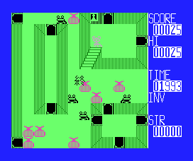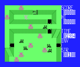 Controls are intuitive yet demand precision: cursor keys for movement, B to crush jars, T to take items, P to leave them behind, O to open doors, E to eat cheese, and K to kick frogs. These six command keys slot seamlessly into the retro design. The simple control scheme masks the depth of the puzzles, as you must consider which jar to smash, which cheese to eat to replenish stamina, and which key to hold for the next doorway.