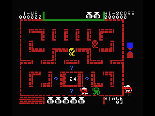 Periodic question mark icons appear in the maze, granting temporary specials when collected: double speed, invulnerability, or hefty point bonuses. These fleeting power-ups spice up the chase sequences, allowing for daring maneuvers against both thieves and the Chief. Timing your boosts just right can turn a near-capture—or near-escape—into a triumphant turnaround, reinforcing the game’s significant emphasis on split-second decision making.