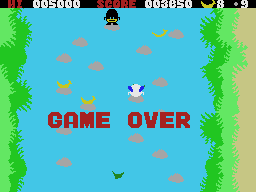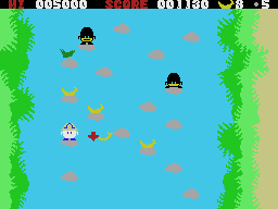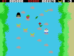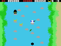 As you drift downstream, bananas float toward you, providing more than just fruit—they’re your primary weapon against the man-eating Boconda tribe. Strategic banana placement on stones creates booby traps: when a Boconda jumps on a laden rock, they slip into the current and are swept away. Timing is everything, and watching the hungry tribespeople misstep adds a mischievous puzzle element to each level. The interplay between luring enemies and dodging deadly currents keeps the gameplay loop fresh.