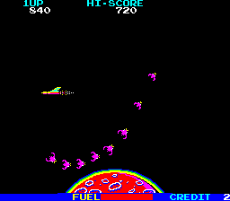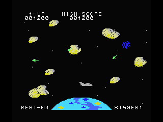 What elevates this basic premise is the constant need to balance offense and defense. While you’re unleashing a steady barrage of laser bolts, you must also weave around jagged rock formations scattered across the lower half of the screen. A single collision with a rocky outcrop or hostile ship spells instant destruction, so every dash and dive demands precision timing. The controls are razor-sharp, allowing you to zip in and out of tight spots with confidence once you’ve mastered the handling.