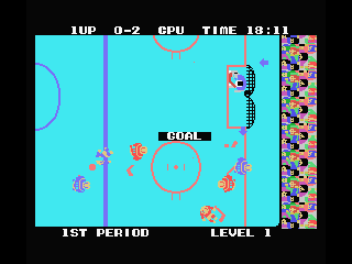 Particle effects are minimal but effective: puck collisions trigger a quick spray of ice shards, and checks produce a brief flash around the skaters. These visual flourishes, though modest, enliven the matches and emphasize key moments like slapshots and goalmouth scrambles. Overall, the graphics strike a balance between functional clarity and nostalgic charm.