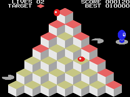 Fuzzball’s core gameplay is immediately familiar to fans of the classic Q*Bert formula. You guide the eponymous Fuzzball character across a three-dimensional pyramid of cubes, hopping from block to block to change each tile’s colour. The goal is simple yet addictive: land on every cube in the level to advance, all while evading a cast of descending enemies. The challenge escalates as you progress, demanding quick reflexes and constant awareness of ever-shifting hazards.