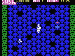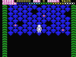 The vertical scrolling mechanic adds a layer of urgency: the maze continuously shifts upward, so lingering too long can result in getting boxed in by enemy objects. Enemies patrol predictable routes at first, but as levels advance, their speed and density ramp up, turning each new floor into a test of reflexes and route memorization. Special power-up objects occasionally appear, granting temporary invincibility or banishing enemies altogether, providing crucial moments to clear tricky clusters of dots.