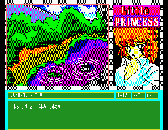 Little Princess plunges you directly into a first-person anime-style adventure, where every action is driven by typed commands. Instead of traditional controllers or point-and-click interfaces, you interact with the world by entering Japanese syllables—primarily in katakana—into a command prompt. Whether you’re examining a curious relic or speaking with a mysterious forest spirit, the text parser demands precise input, keeping you fully engaged in the act of exploration.
