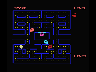 The graphics in Oh Shit! capture the essence of the early 1980s arcade era while leveraging the MSX’s modest capabilities. Character sprites are crisply defined, with each ghost sporting its signature color and simple facial expressions that remain true to the original. The maze walls use a bright palette that contrasts well against the dots and background, ensuring that gameplay remains clear and readable.