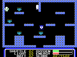 Once the vertically scrolling flight sequence concludes, Space Camp shifts gears to zero‐gravity station exploration. Ejecting from your vessel, you glide through labyrinthine corridors, again juggling thrust, oxygen, and energy. The challenge here is part puzzle, part stealth: certain panels conceal hidden treasure chambers that you uncover by pushing the joystick button at the right moment. Every push risks attracting the station’s guardian, which stiffens your pulse as you weigh greed against safety.