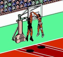 Color palettes pop on CRT televisions, with bold team hues and court accents that stand out even in hectic sequences. The motion blur effect on fast breaks and overhead camera shifts during shot attempts add cinematic flair. While polygon counts are non-existent, the pixel art charm lends the game a timeless quality that still holds up under modern retrospectives.