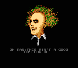 Special effects such as laser beams, fire bursts, and the momentary glow of collected scare points add visual punch without overwhelming the screen. Transition effects between rooms—complete with a wavy, “ghostly” screen-wipe—lend an extra layer of charm. While the graphics can’t compete with modern HD titles, Beetlejuice’s retro aesthetic should appeal to players who appreciate nostalgic, well-crafted pixel art.