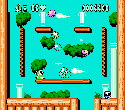Visually, Bubble Bobble Part 2 is a vibrant treat for the eyes. The pixel art retains the whimsical charm of the original arcade title, but with smoother animations and richer color palettes. Backgrounds are intricately designed, featuring lush forests, icy caverns, and lava-filled lairs that feel alive with subtle environmental effects.