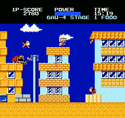 Backgrounds are simple yet colorful, depicting sunlit skies, rolling hills, and occasional cityscapes. Parallax scrolling layers lend a sense of depth to otherwise flat levels, while small environmental touches—like drifting clouds or blinking stars—keep the scenery from feeling static. Though the hardware limitations are evident, the game’s tidy presentation and playful art direction give it considerable retro appeal.