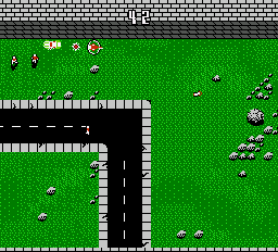 Combat plays as much a role as racing does: your vehicle comes equipped with a forward gun for shooting victims and a reinforced bumper to crush pedestrians under your wheels. The collisions trigger satisfying 8-bit squelches and brief slowdown animations, giving each hit its own weight. Meanwhile, enemy helicopters rain down heat-seeking missiles that force you to weave and dodge constantly, turning every stage into a chaotic dance between offense and defense.