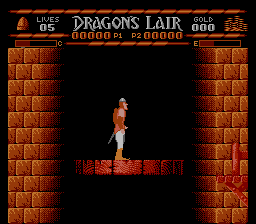 For an NES title, Dragon’s Lair delivers surprisingly detailed sprites and backgrounds. Dirk is rendered with a fair amount of personality—his helmet plume and bold colors stand out nicely against the stone dungeon walls and fiery caverns. Enemies such as bats, snakes, and the Lizard King himself are large enough to be easily recognized, and their movement patterns help telegraph danger to the observant player.