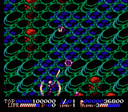Max starts off with a basic laser rifle that can be aimed directly ahead, but scattered throughout the stages are power-ups that radically expand your offensive arsenal. Collecting multi-directional shot upgrades lets you tackle foes flanking you from either side, and shield pickups grant a brief respite from damage. Additionally, strategically timed jumps unleash directional bombs, perfect for clearing clusters of smaller enemies or dealing massive damage to mid-level mini-bosses.