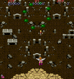 Legendary Wings delivers a classic arcade shoot ’em up experience, blending Greek mythology with futuristic warfare across six intense levels. At its core, the game follows a top-down, vertical-scrolling format reminiscent of Xevious and Capcom’s own 1943, giving players a familiar yet uniquely flavored challenge. You pilot a winged hero armed with a rapid-fire pegasus bolt and a stockpile of missiles, each dedicated to different enemy types—airborne foes fall to your main weapon, while ground-bound turrets and armored units crumble under your secondary missile salvo.